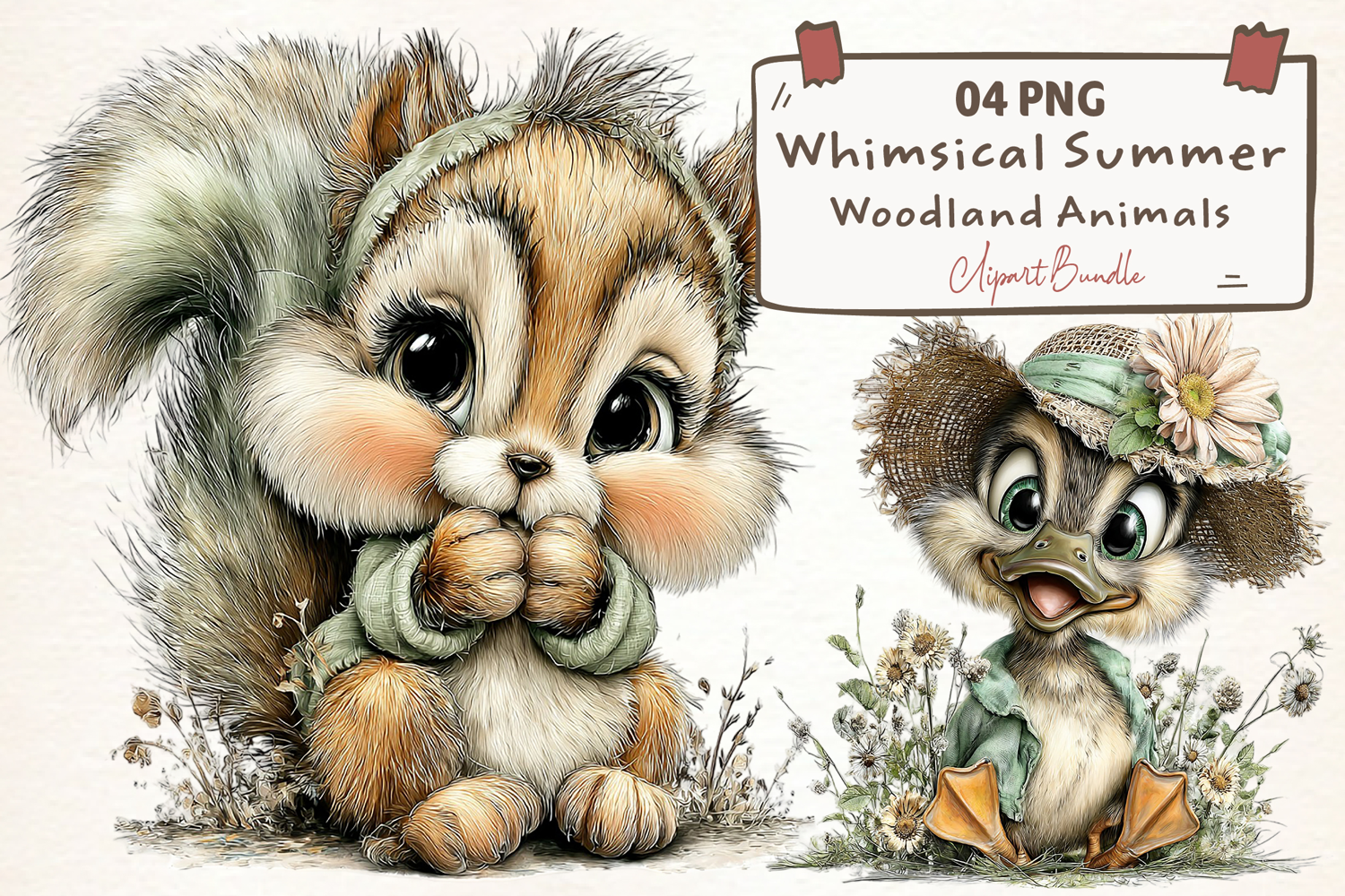 Similar Design Products to Whimsical Summer Woodland Animals Clipart