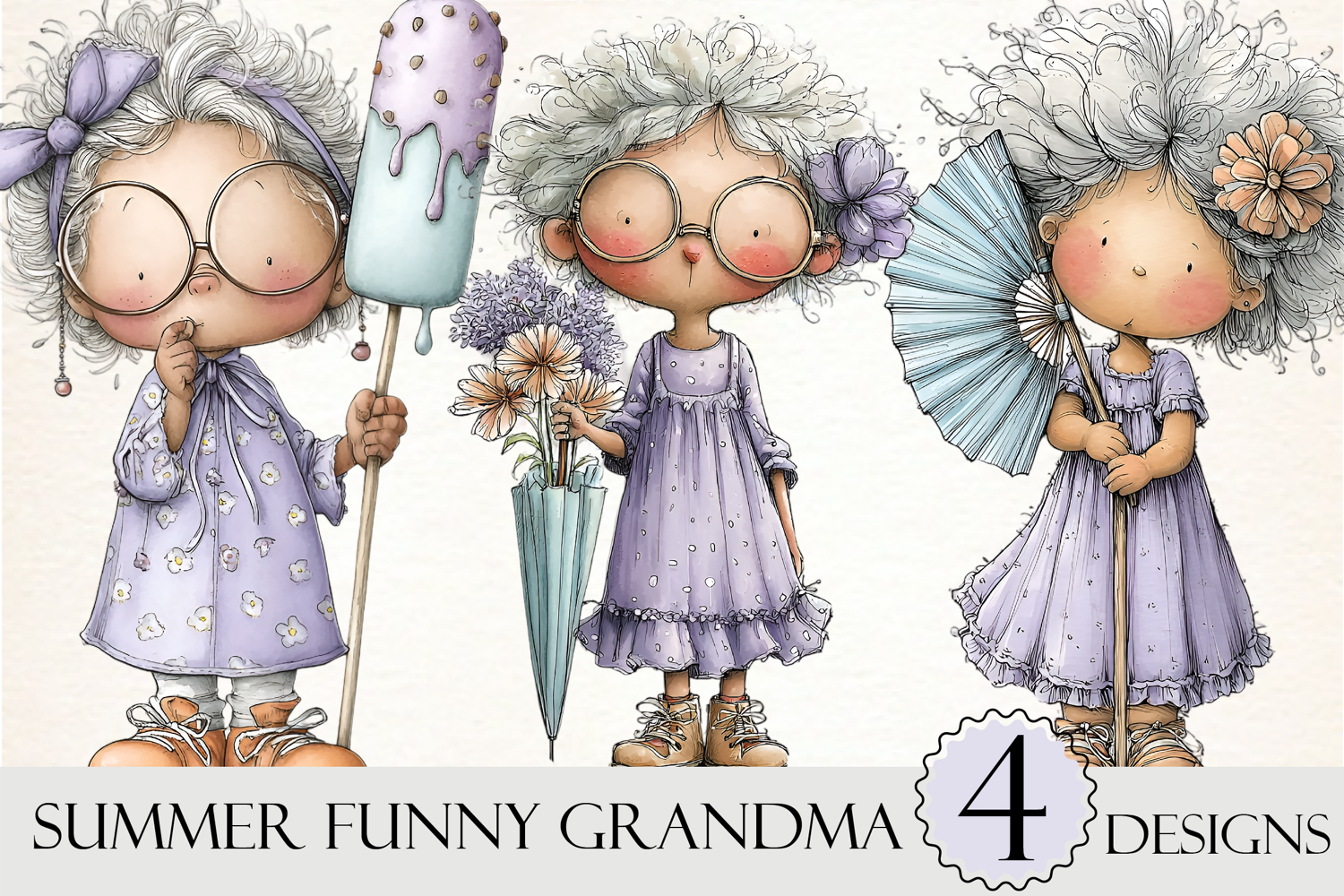 Summer Flower Clipart Summer Clipart Watercolor Summer Sublimation Hand-drawn Clipart Whimsical Clipart Whimsical Easter Whimsical Summer Clipart Summer Funny Grandma Clipart