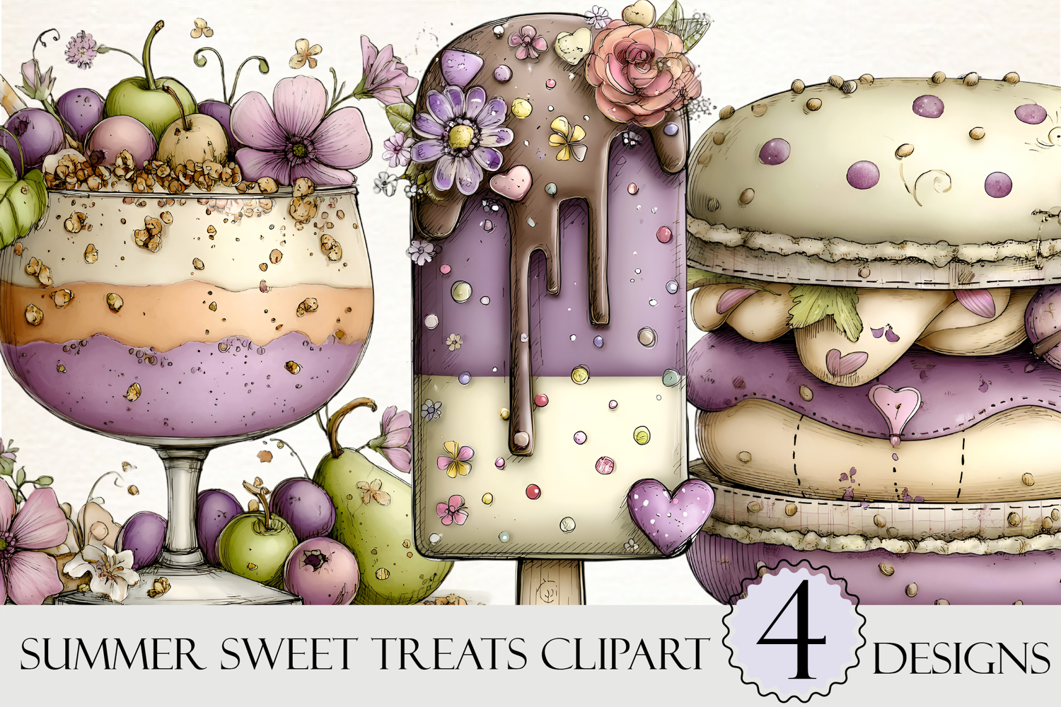 Whimsical Summer Sweet Treats Clipart