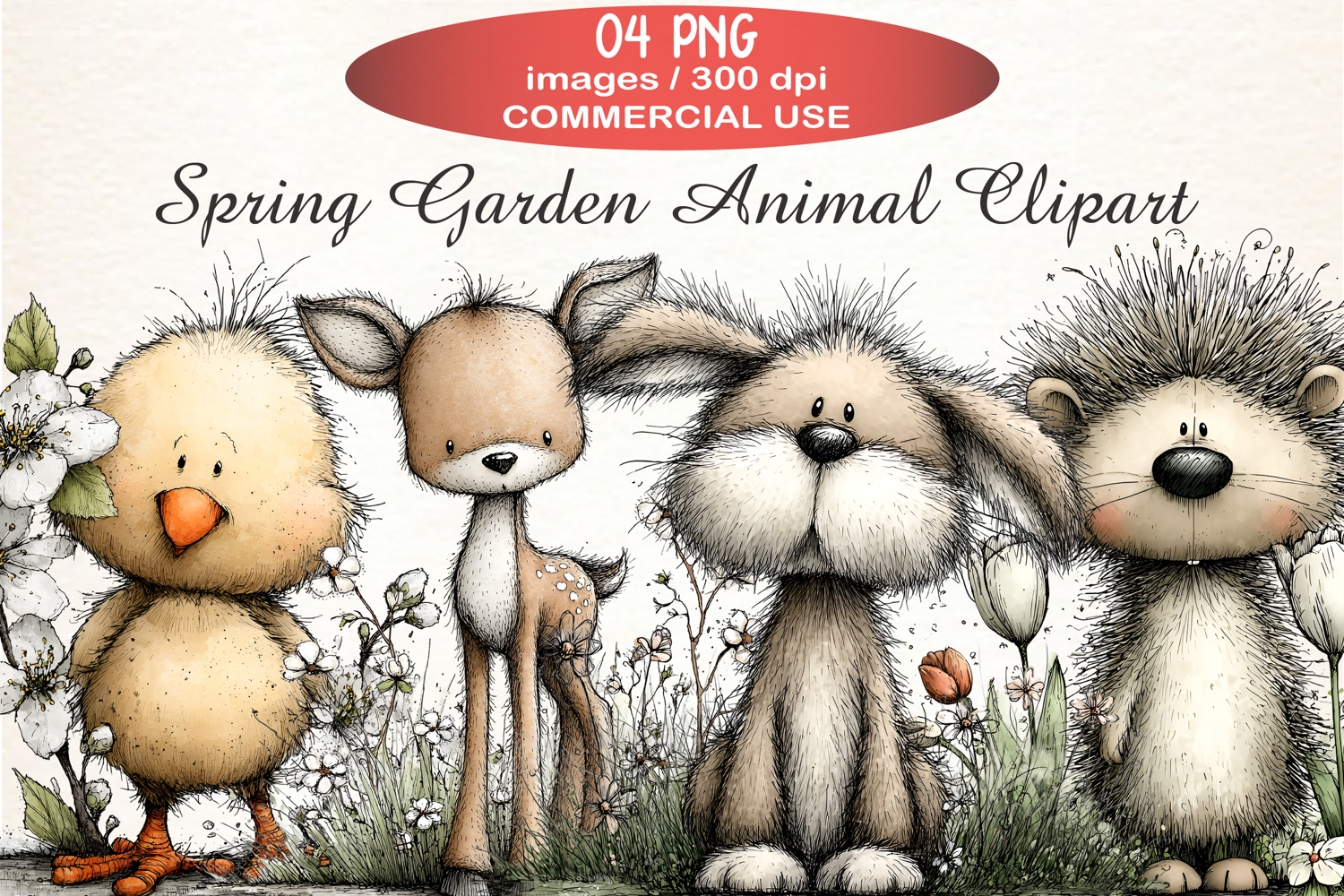 Spring Flower Clipart Sublimation Hand-drawn Clipart Spring Clipart Bunny Clipart Whimsical Clipart Whimsical Easter Whimsical Spring Clipart Spring Garden Animal Clipart