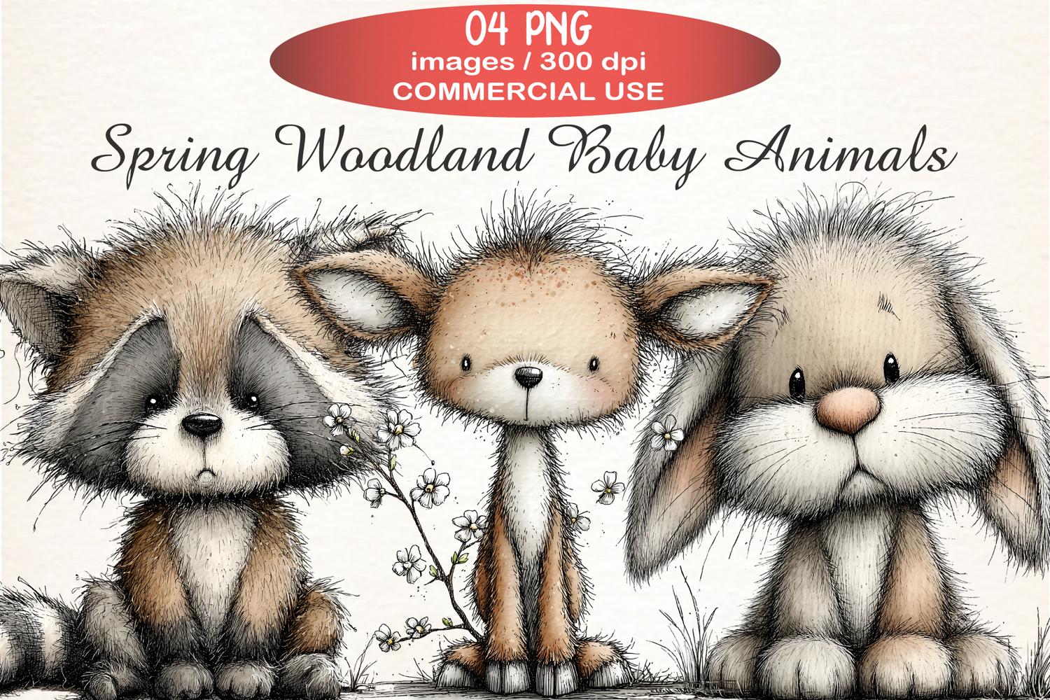 Spring Flower Clipart Sublimation Hand-drawn Clipart Spring Clipart Bunny Clipart Whimsical Clipart Whimsical Easter Whimsical Spring Clipart Spring Woodland Baby Animals Png