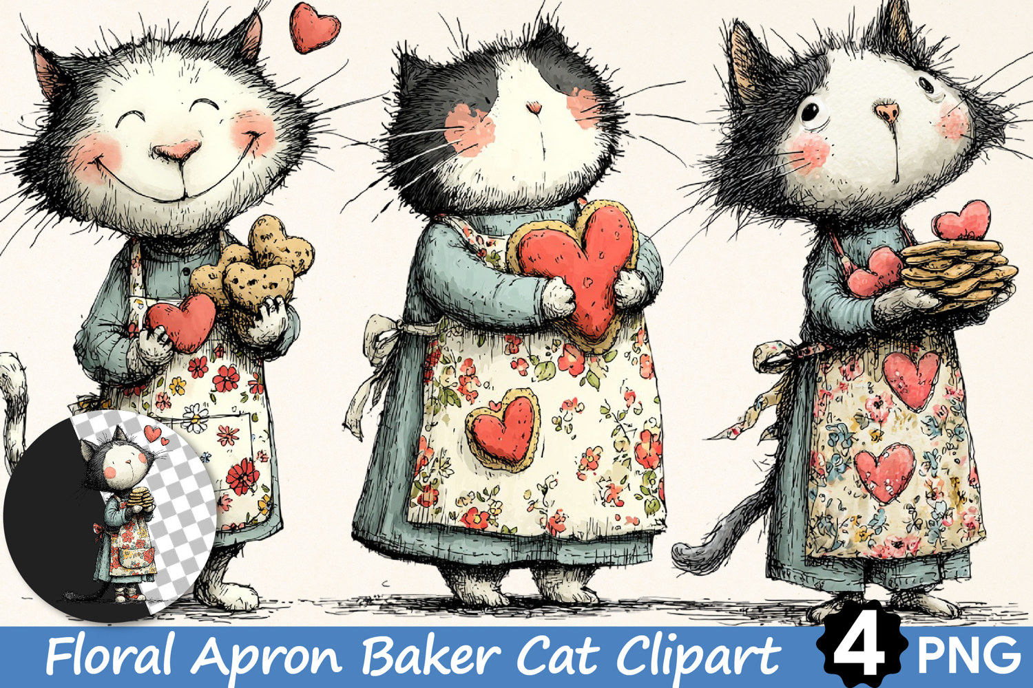 Floral Apron Baker Cat Clipart