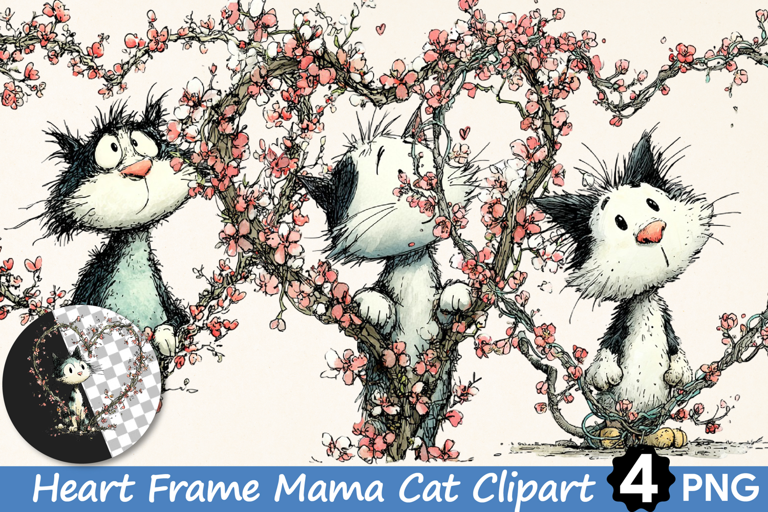 Flower Clipart Clipart Bundle Sublimation Hand-drawn Clipart Mother's Day Png Clipart Whimsical Design Mother's Day Clipart Whimsical Clipart Heart Frame Mama Cat Clipart