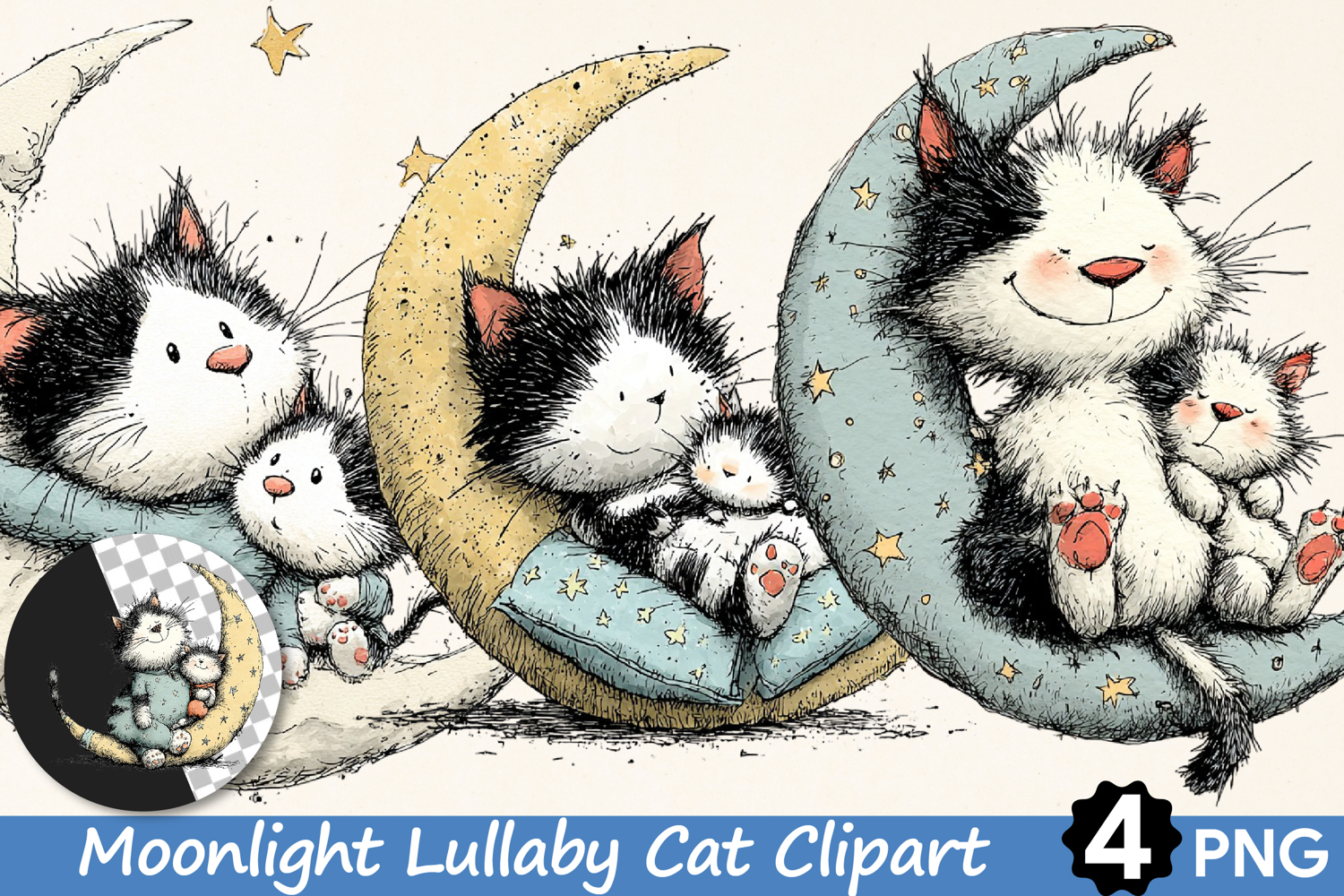 Moonlight Lullaby Cat Clipart example image 1