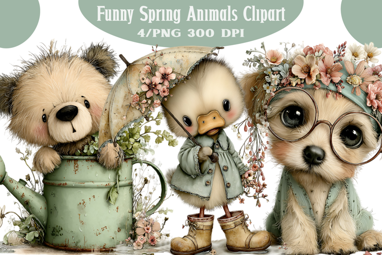 Funny Spring Animals Clipart example image 1