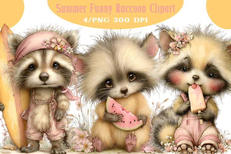Summer Funny Raccoon Clipart example image 1