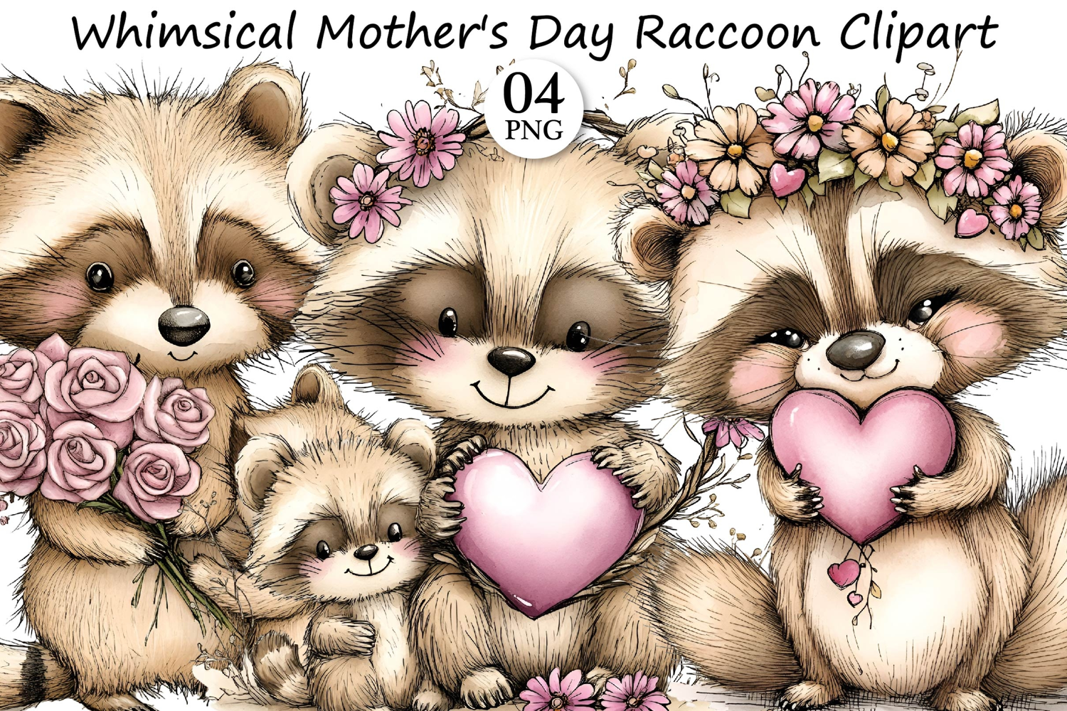 Whimsical Mother's Day Raccoon Clipart example image 1