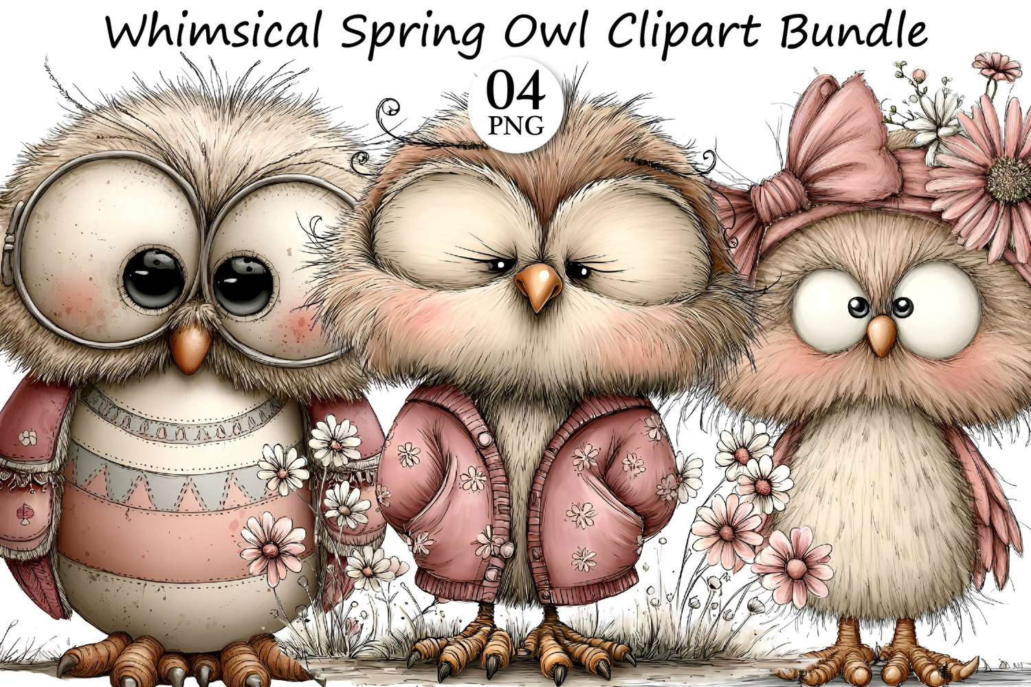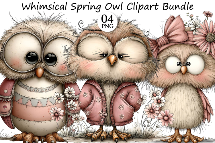 Whimsical Spring Owl Clipart