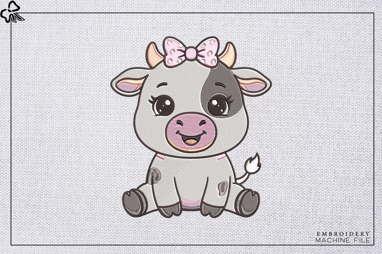 Cartoon Cow Nursery Embroidery Cow With Bow Farm Animal Embroidery Cow Embroidery Kawaii Cow Cute Cow Embroidery Baby Cow Design Cute Baby Cow Embroidery Design Girl Cow Design