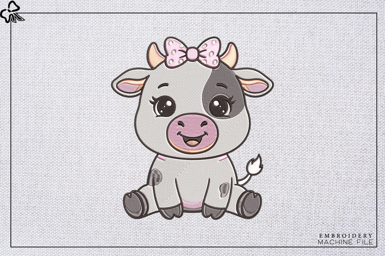 Bring sweetness and charm to your embroidery projects with this Cute Baby Cow Embroidery Design