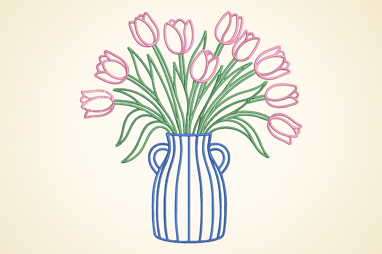 Line Art Embroidery Tulip Embroidery Design Spring Embroidery Design Minimalist Embroidery Modern Embroidery Design Vase Embroidery Design Flower Vase Embroidery Flower Bouquet Embroidery Floral Embroidery File Flower Vase Embroidery Design