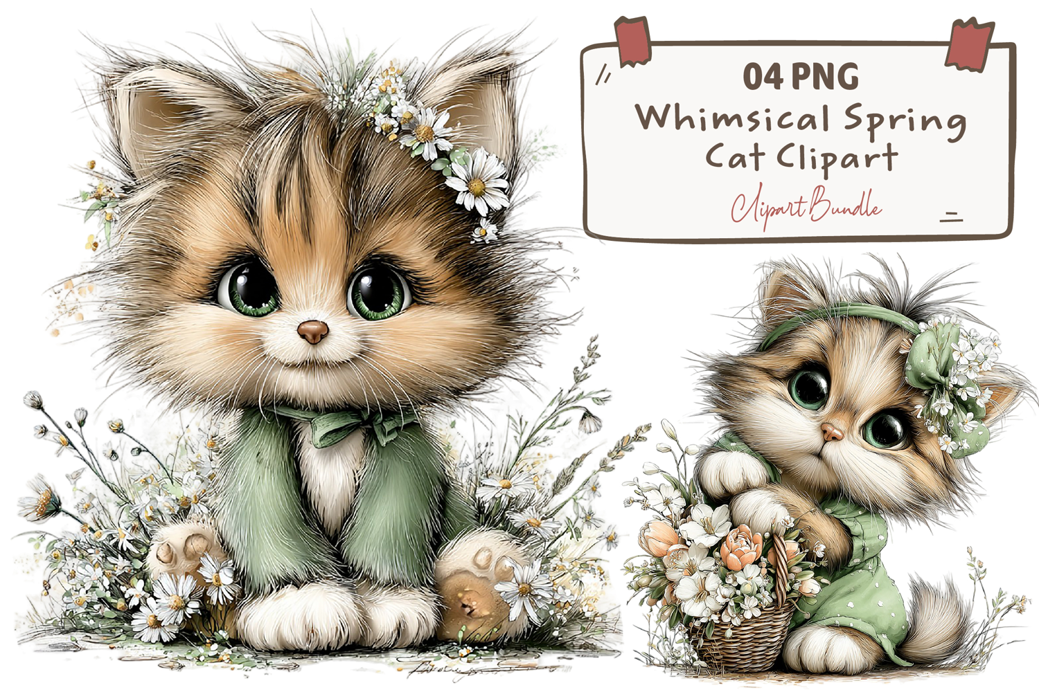 Whimsical Spring Cat Clipart