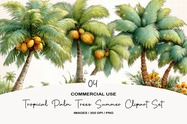 Tropical Palm Trees Summer Clipart example image 1