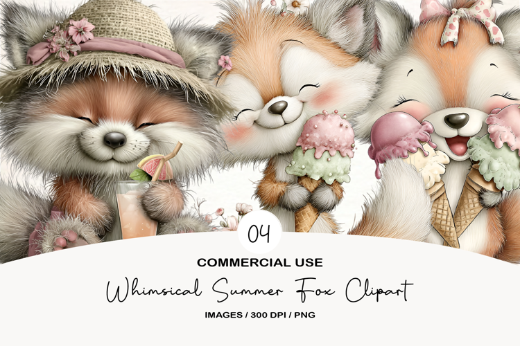Whimsical Watercolor Clipart Summer Clipart Sublimation Summer Clipart Bundle Summer Sublimation Summer Png Png Sublimation Whimsical Summer Whimsical Summer Fox Clipart