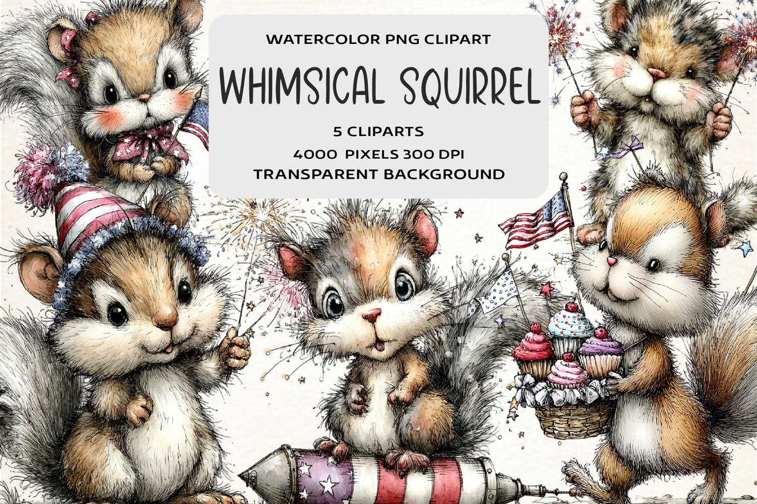 Similar Design Products to Whimsical 4th Of July Squirrel Clipart