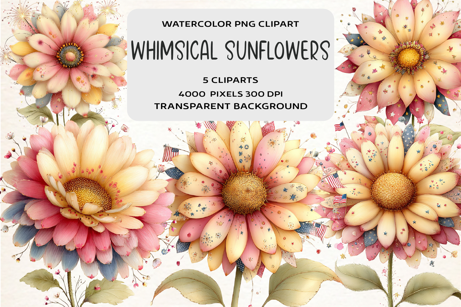 Whimsical 4th Of July Sunflowers Clipart example image 1
