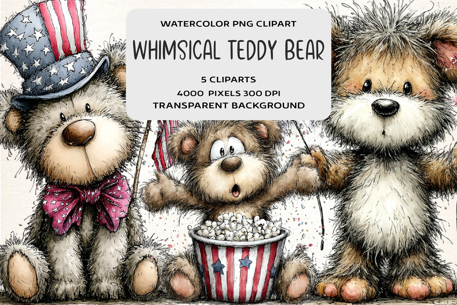 Whimsical 4th Of July Teddy Bear Clipart example image 1