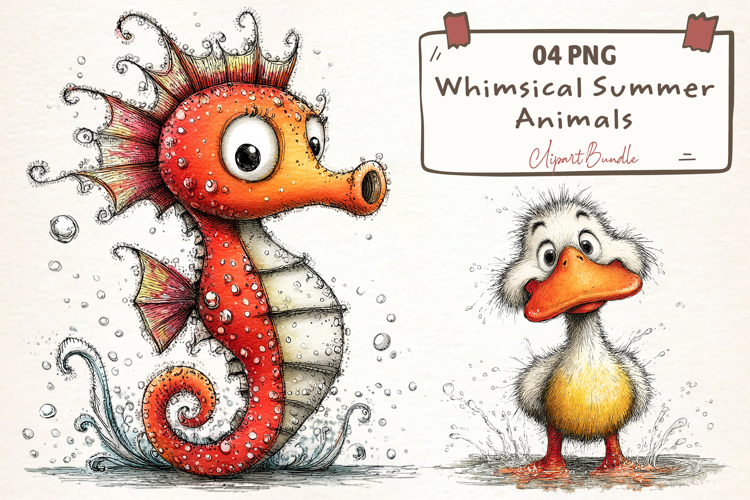 Whimsical Summer Animals PNG Clipart example image 1