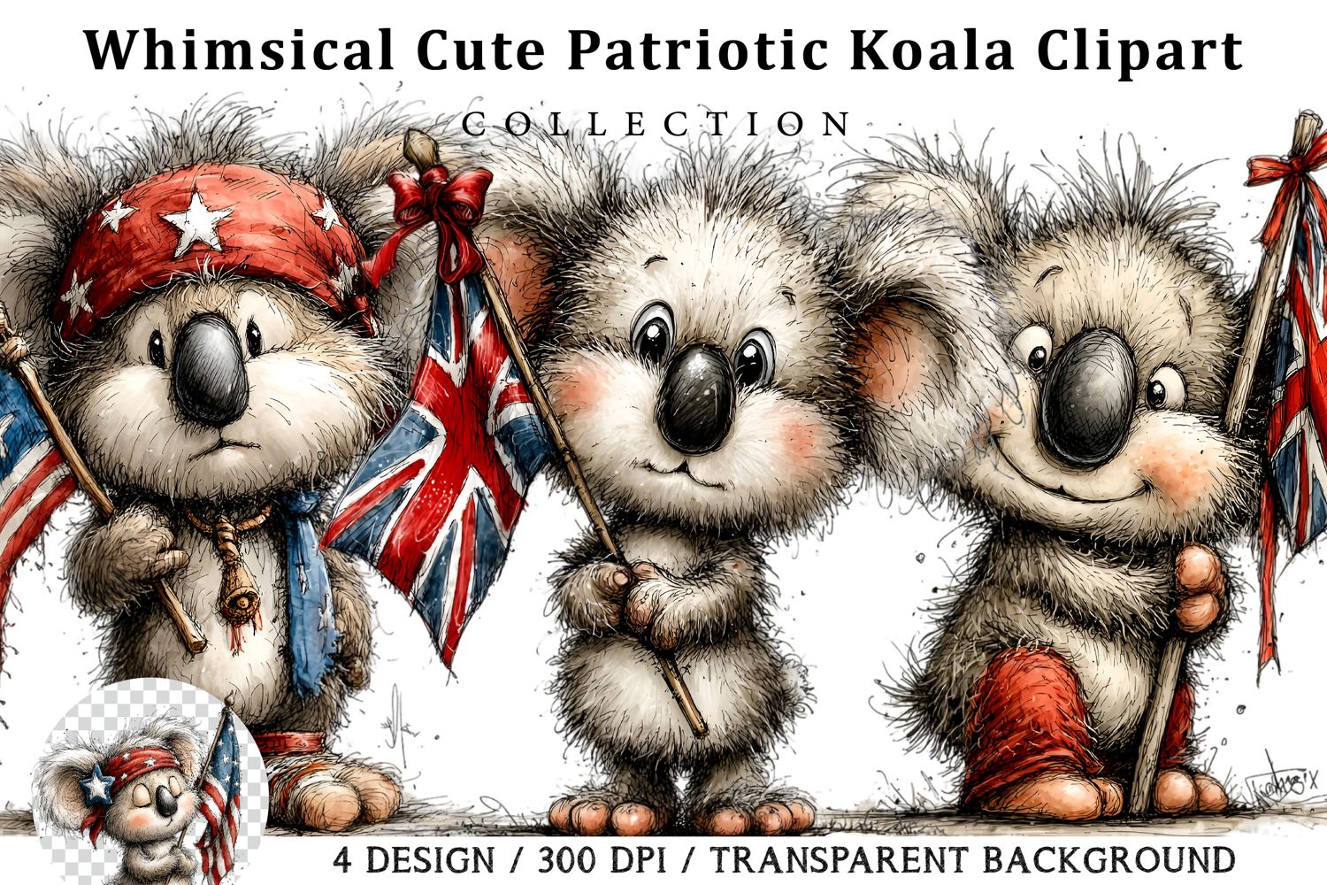 Similar Design Products to Whimsical Cute Patriotic Koala Clipart