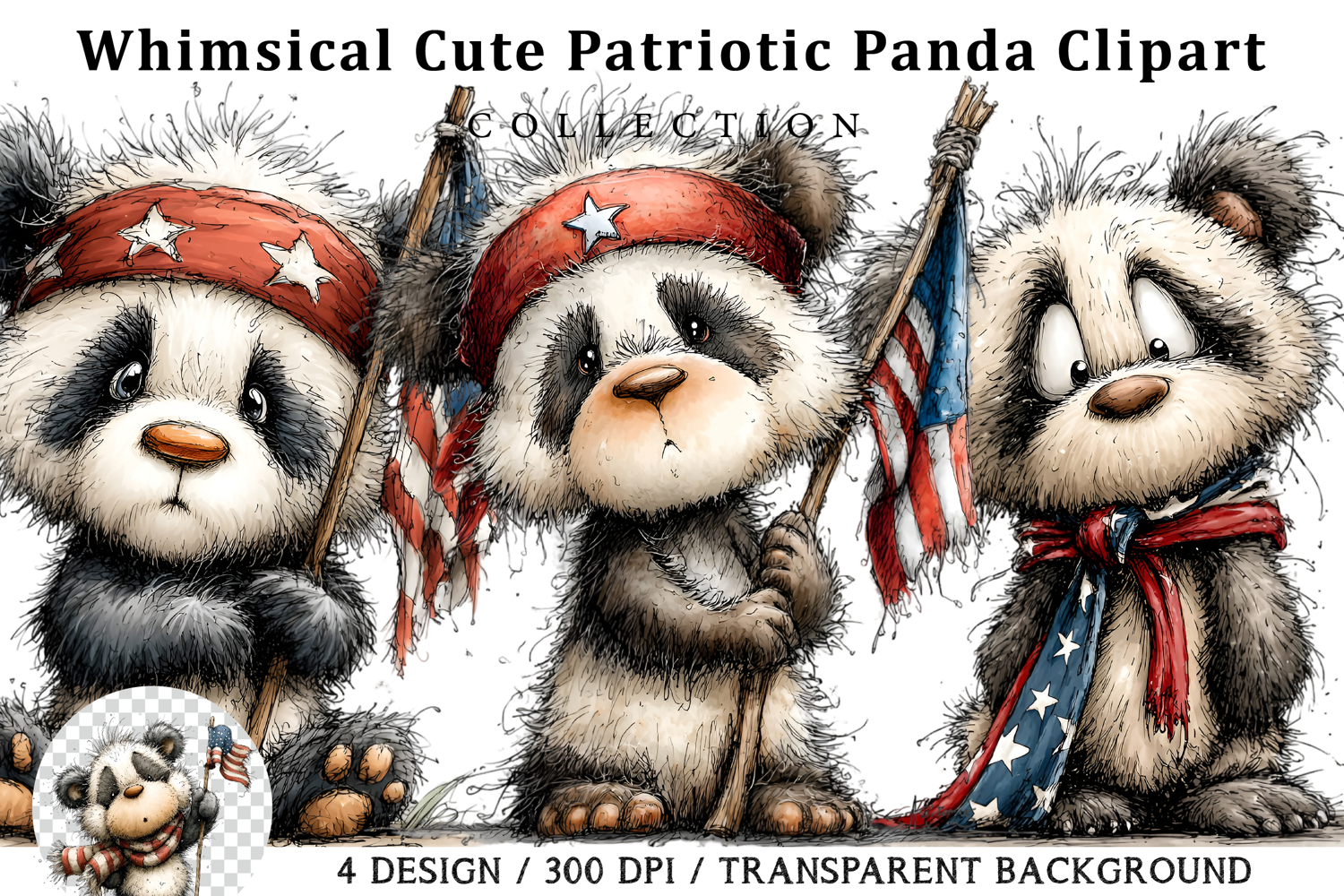 Similar Design Products to Whimsical Cute Patriotic Panda Clipart