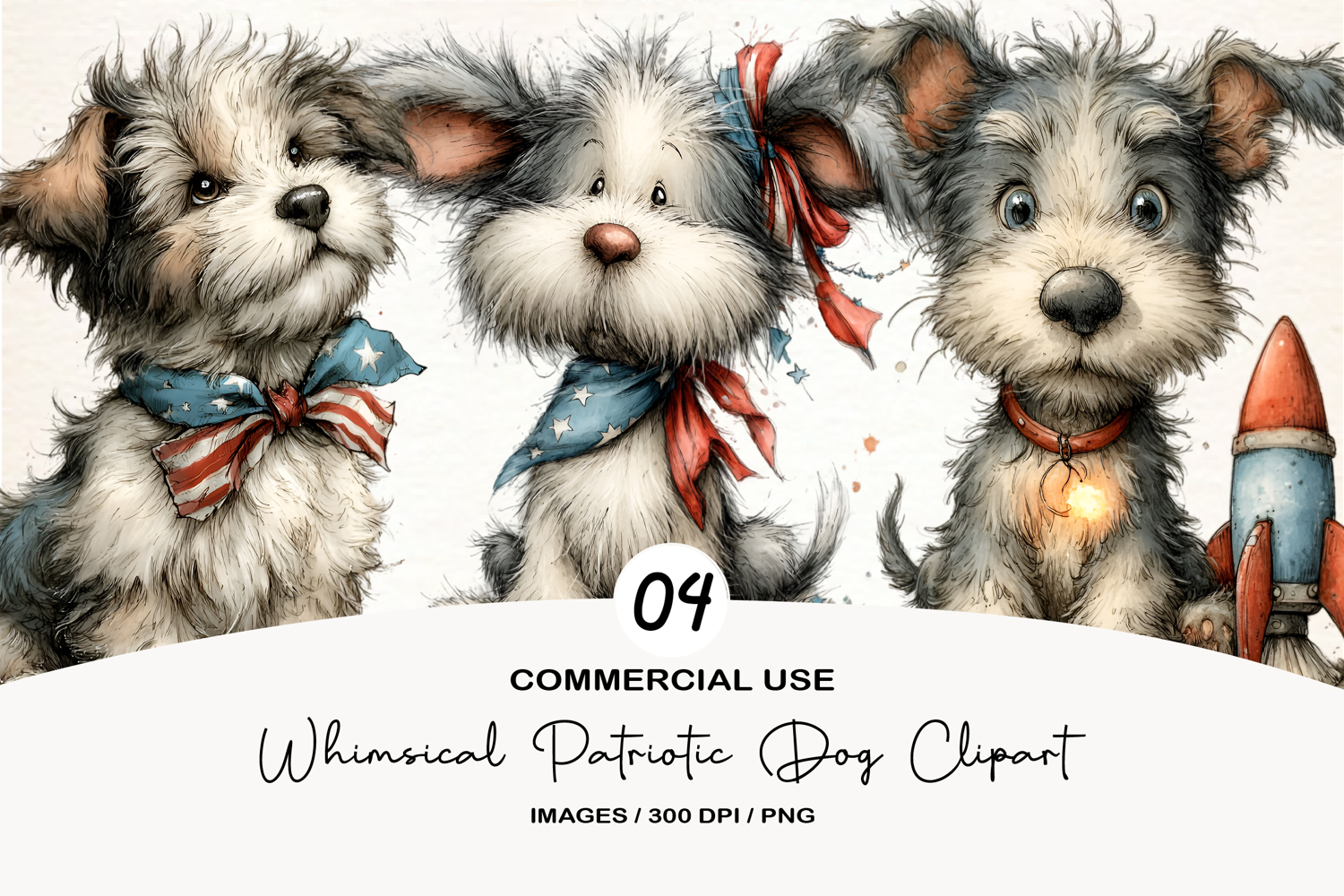 Similar Design Products to Whimsical Patriotic Dog Clipart