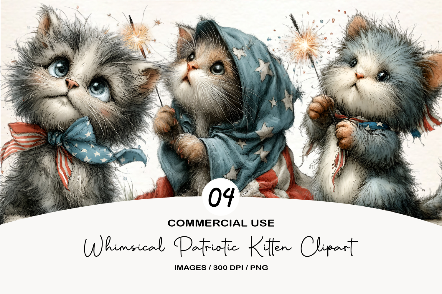 Similar Design Products to Whimsical Patriotic Kitten Clipart