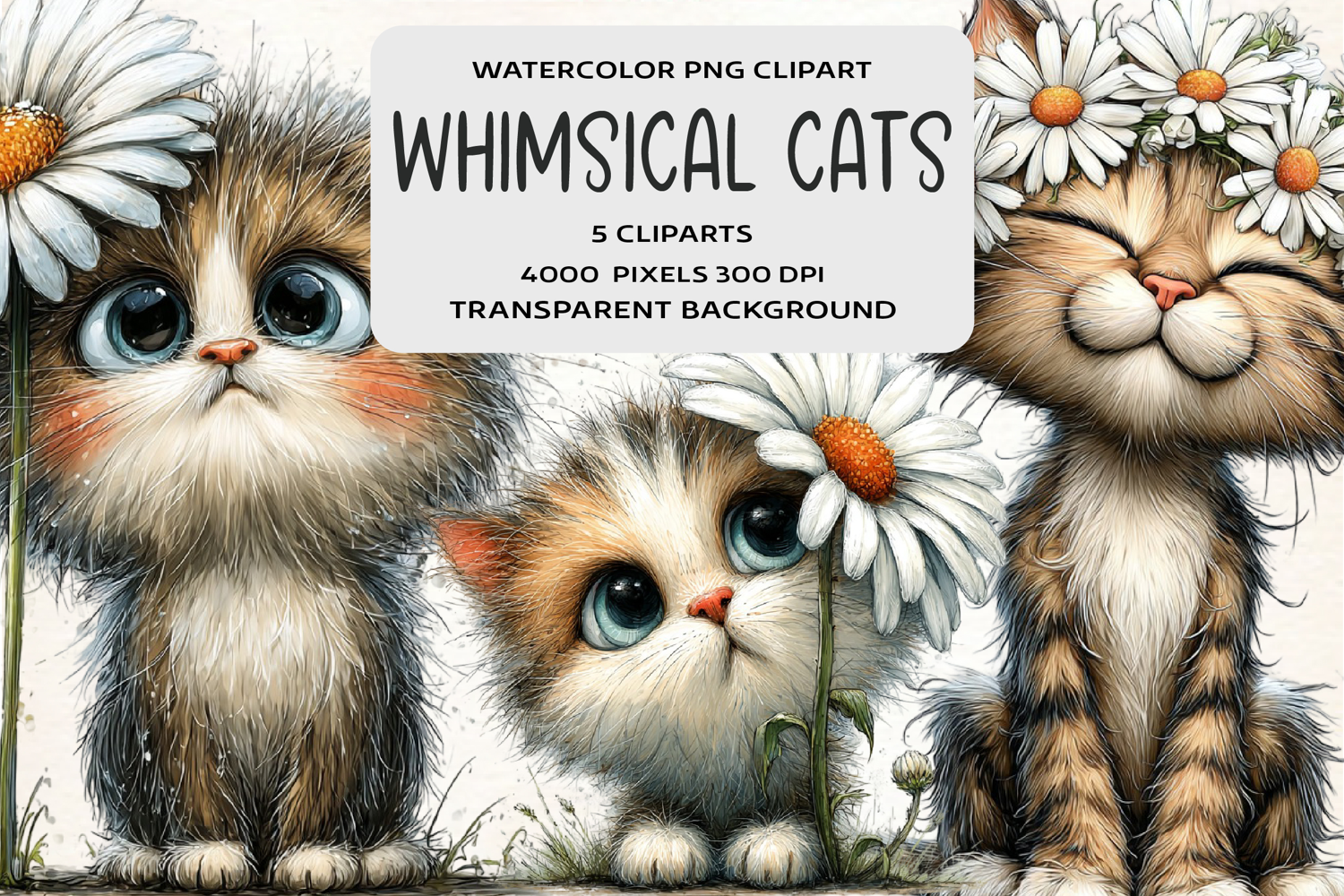 Whimsical Cute Cats Daisy Clipart