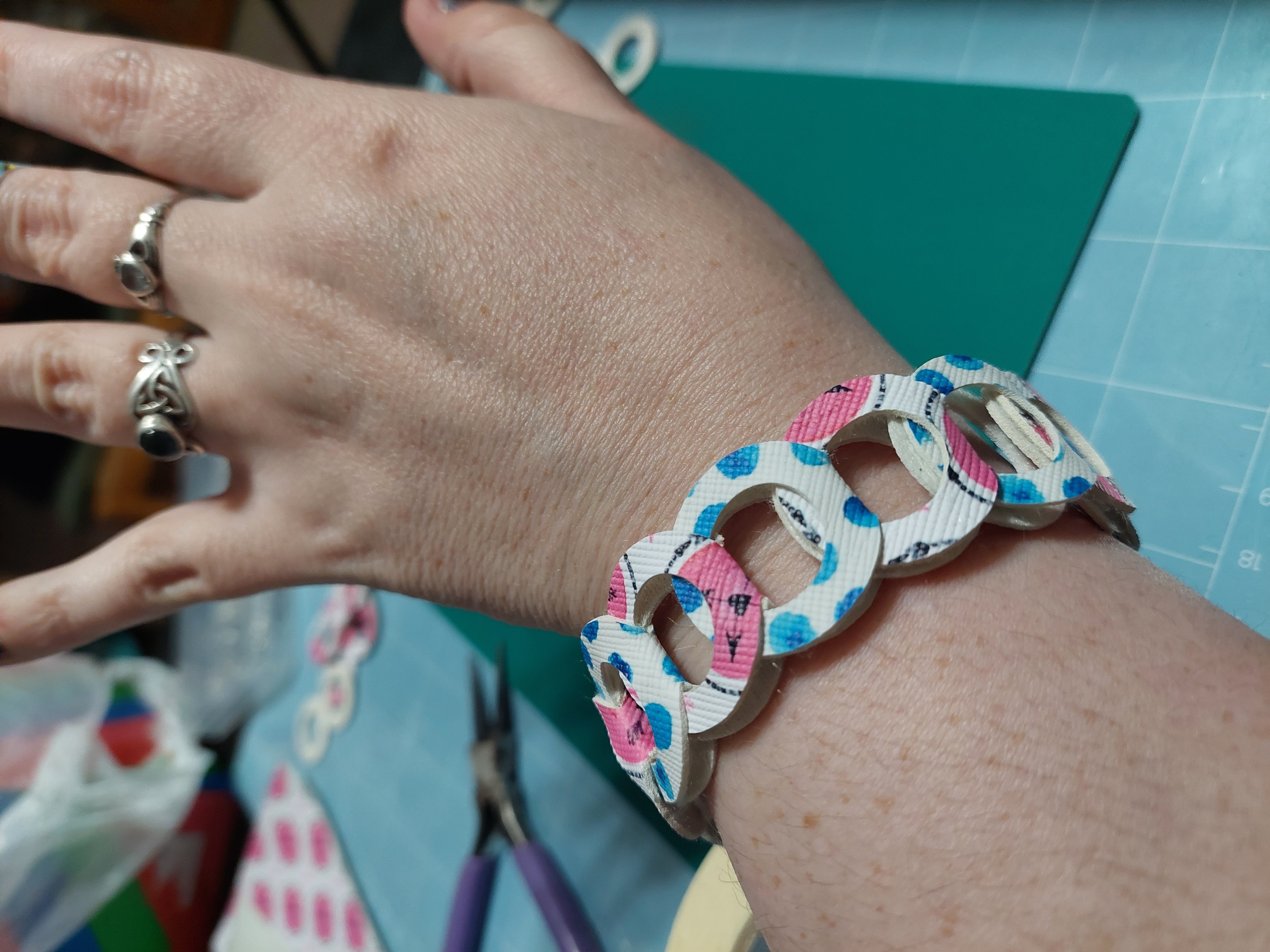 You loved my Link-de-Link so much we did it in circles! Create headbands, bracelets, satchel straps, fobs, straps, belts, so many cool uses for your linking templates. Such a great way to use up all those small pieces of faux leather or real leather you just can't throw away!