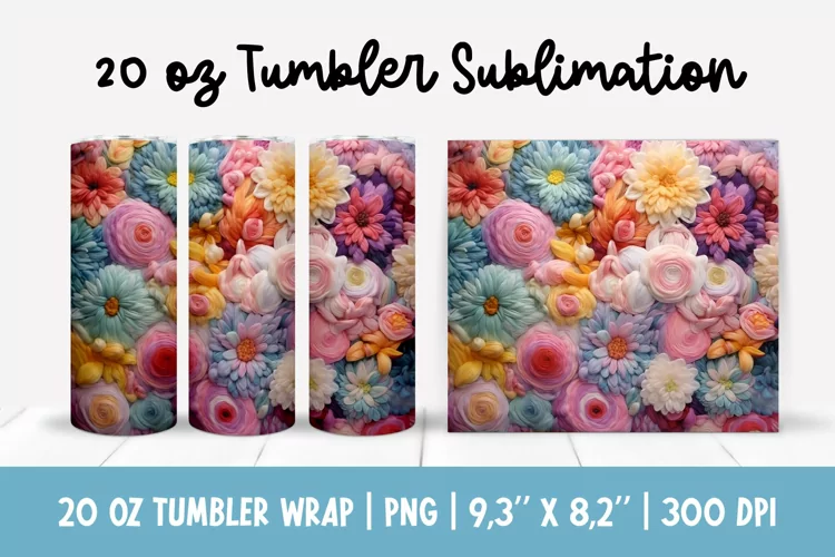 20 oz 3d Flowers Tumbler Sublimation | Wildflowers Tumbler Wrap