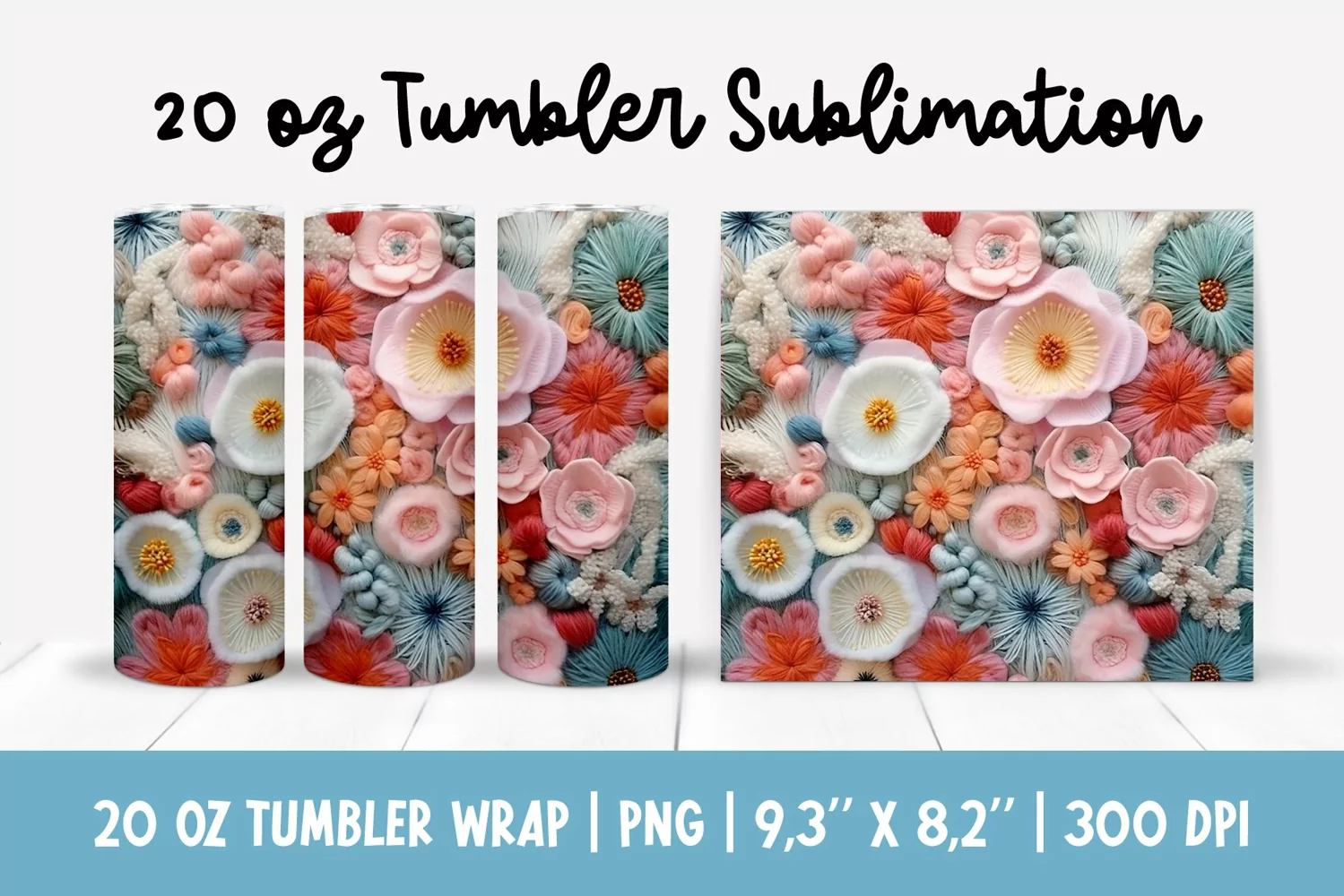 20 oz 3d Flowers Tumbler Sublimation | Wildflowers Tumbler Wrap