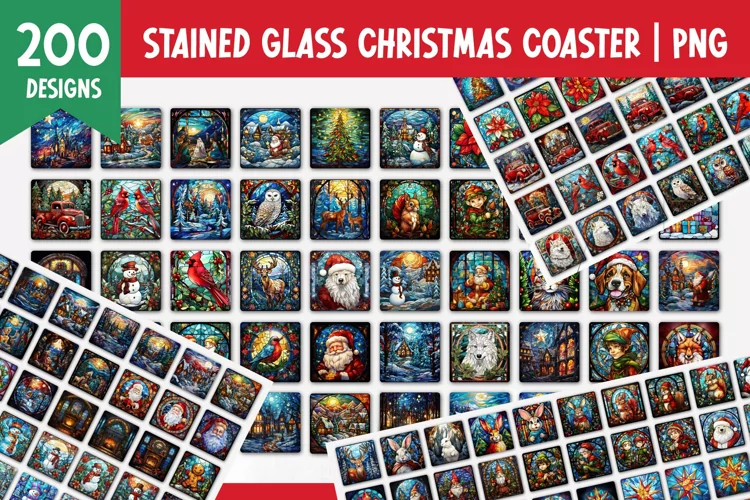 Big Christmas Bundle Christmas Coaster Mega Sublimation Bundle Mega Christmas Bundle Square Coaster Sublimation Stained Glass Christmas Stained Glass Cardinal Coasters Bundle Sublimation Stained Glass Santa Stained Glass Christmas Png