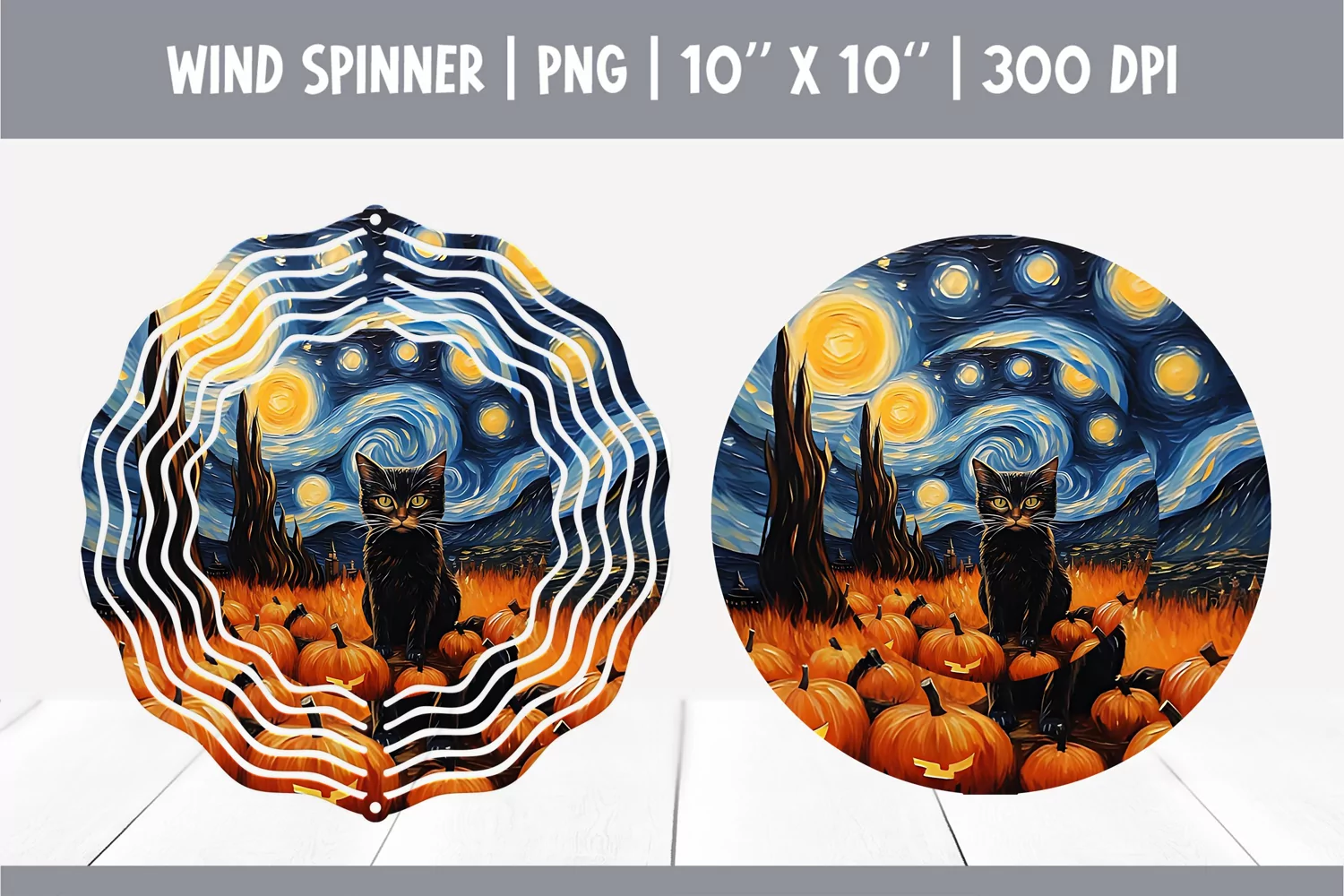 Halloween Cat Wind Spinner Sublimation | Starry Night example image 1