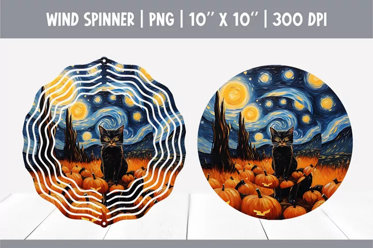 Van Gogh Starry Night Halloween Sublimation Halloween Cat Png Wind Spinner Sublimation Halloween Wind Spinner Cat Wind Spinner Halloween Cat Wind Spinner Halloween Cat With A Hat Cat In A Witch Hat