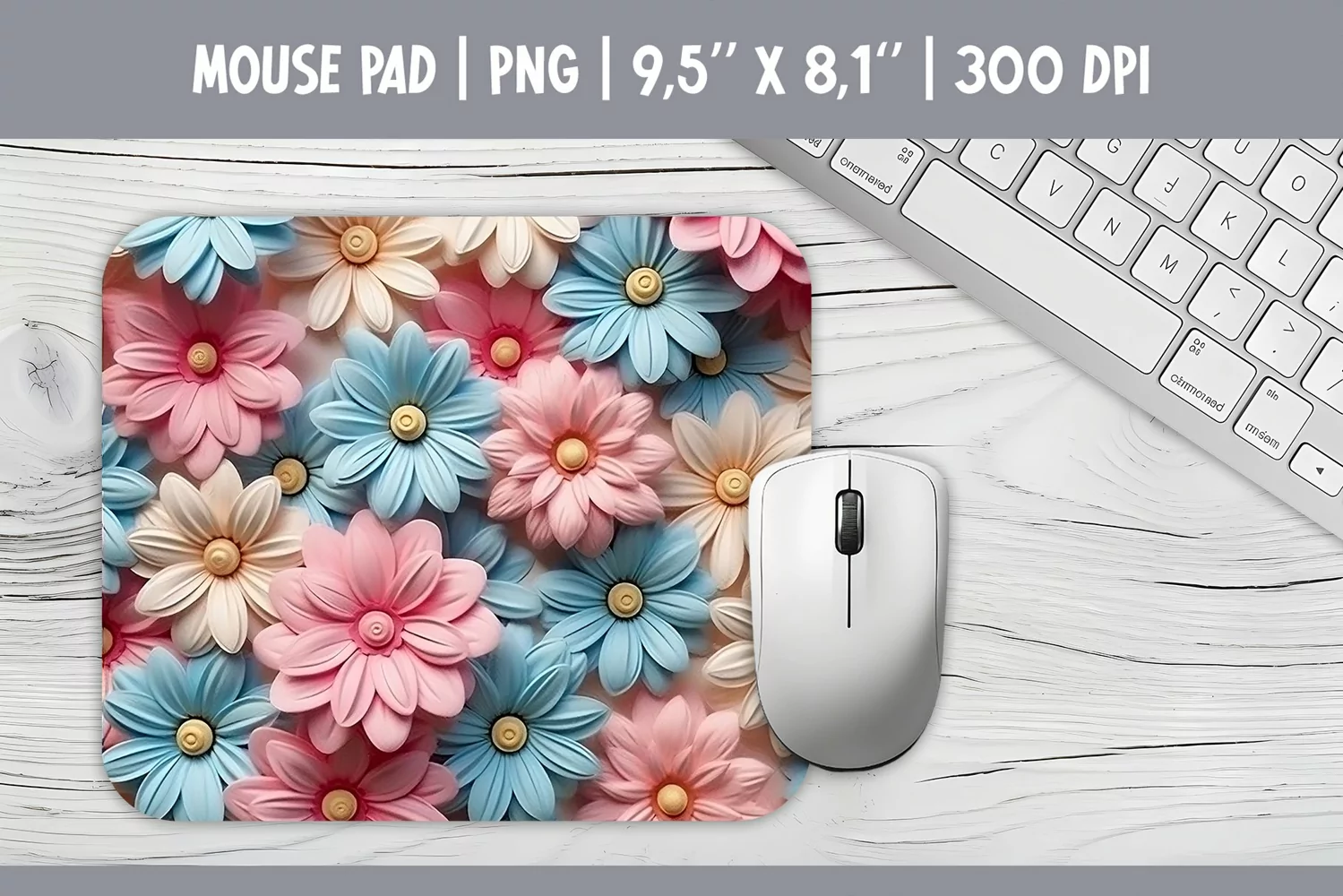 3d Bright Flowers Mouse Pad Sublimation Design PNG example image 1