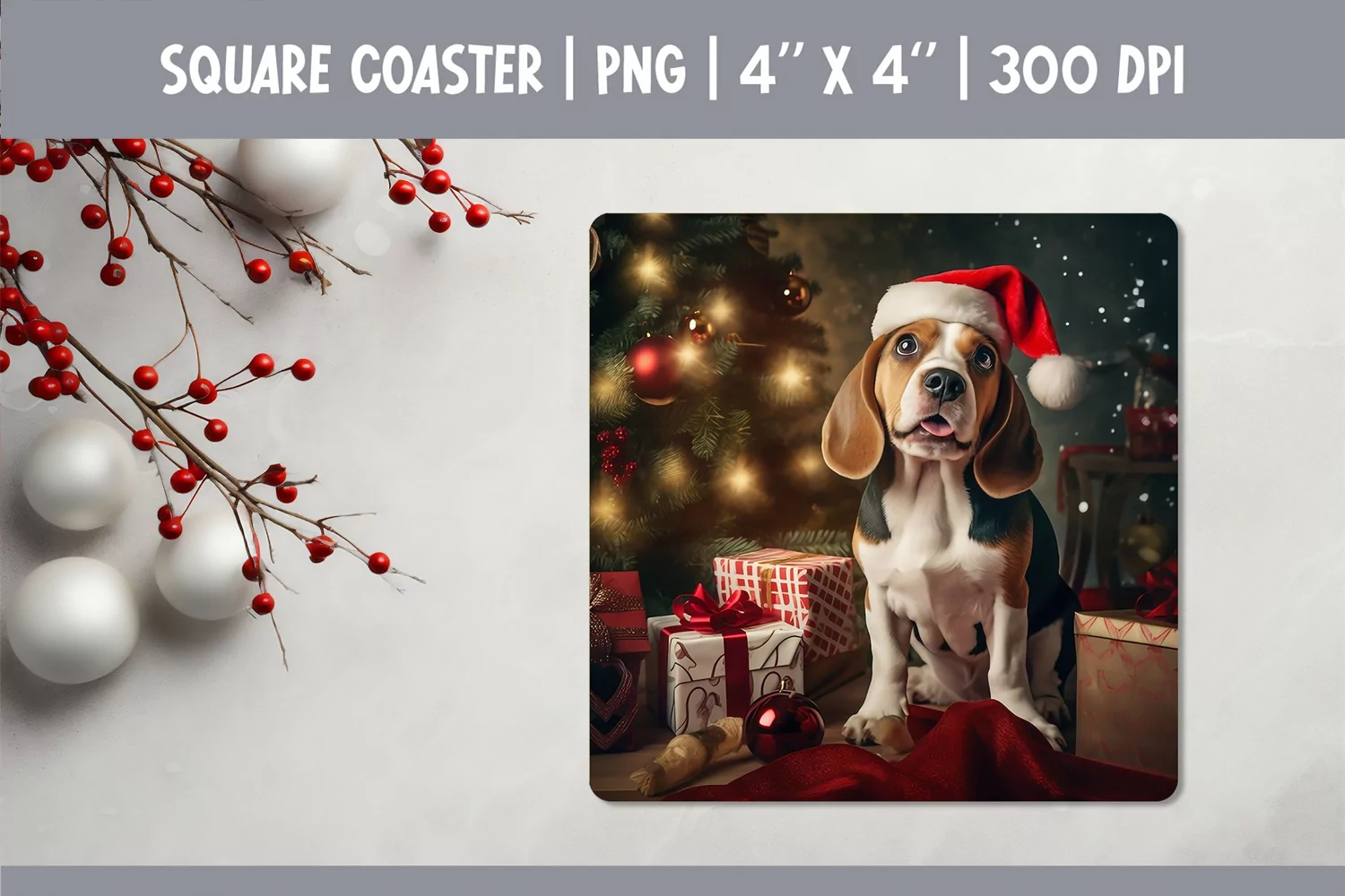 Christmas Dog Square Coaster Sublimation Design| Beagle PNG example image 1