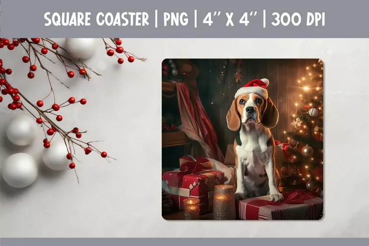 Christmas Dog Square Coaster Sublimation Design| Beagle PNG