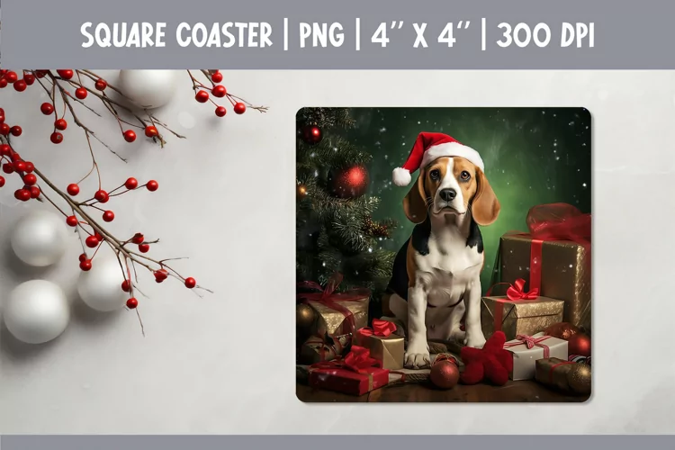 Christmas Dog Square Coaster Sublimation Design| Beagle PNG