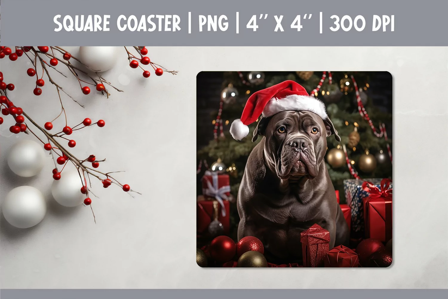 Similar Design Products to Christmas Dog Square Coaster Sublimation Design| Cane Corso