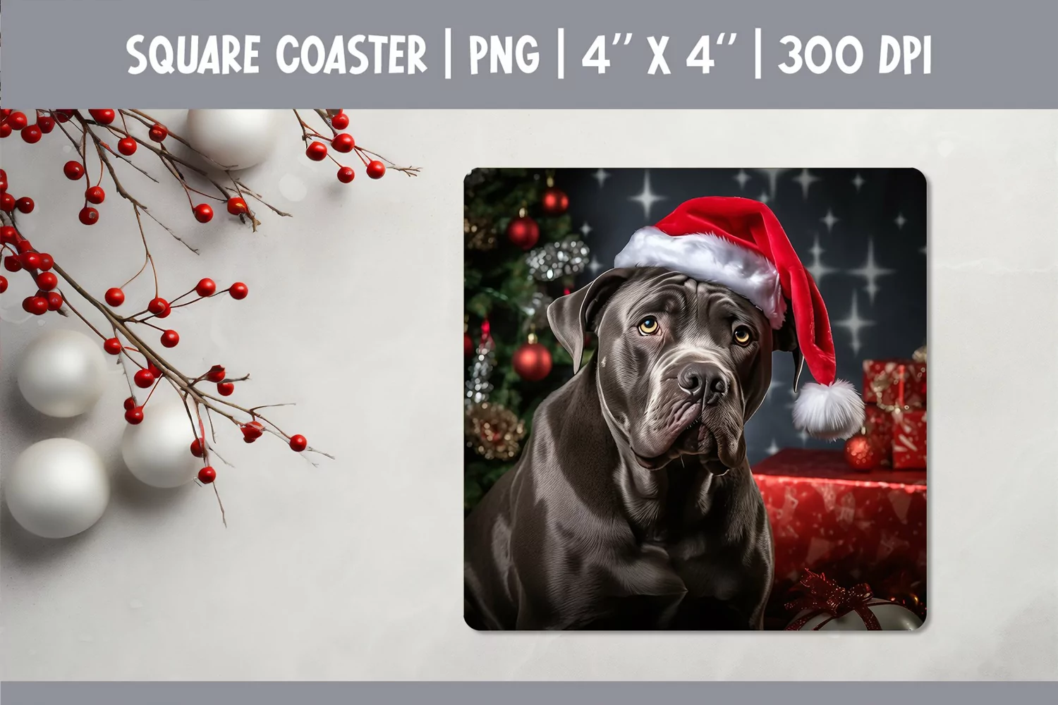 Similar Design Products to Christmas Dog Square Coaster Sublimation Design| Cane Corso