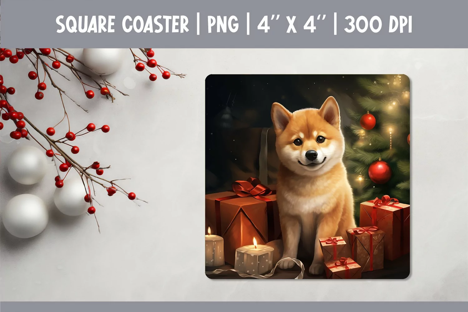Christmas Dog Square Coaster Sublimation Design| shiba inu example image 1