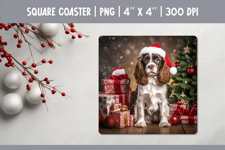 Christmas Dog Square Coaster Sublimation Design| Spaniel