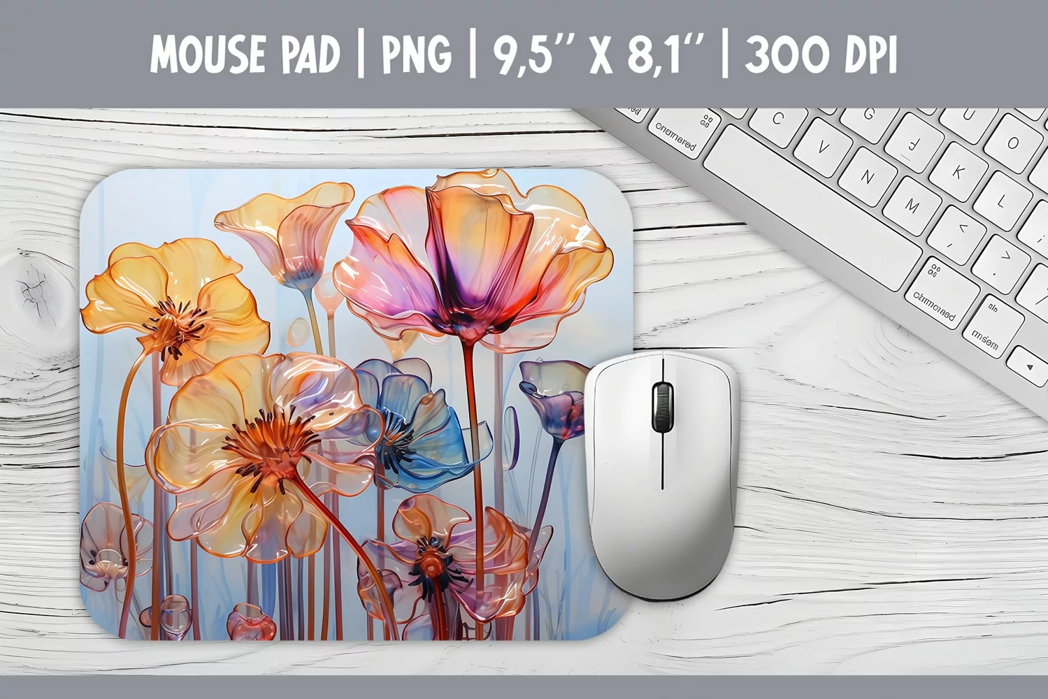 3d Bright Glass Flowers Mouse Pad | Sublimation Design PNG