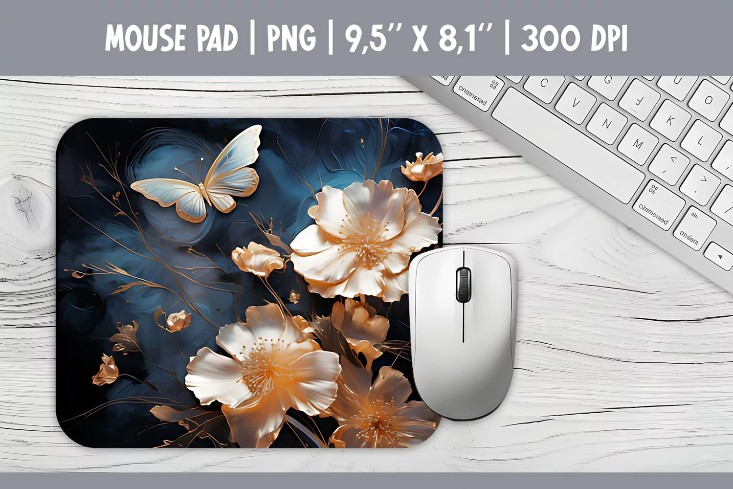 3d Gold Butterflies & Flowers Mouse Pad Sublimation Design example image 1