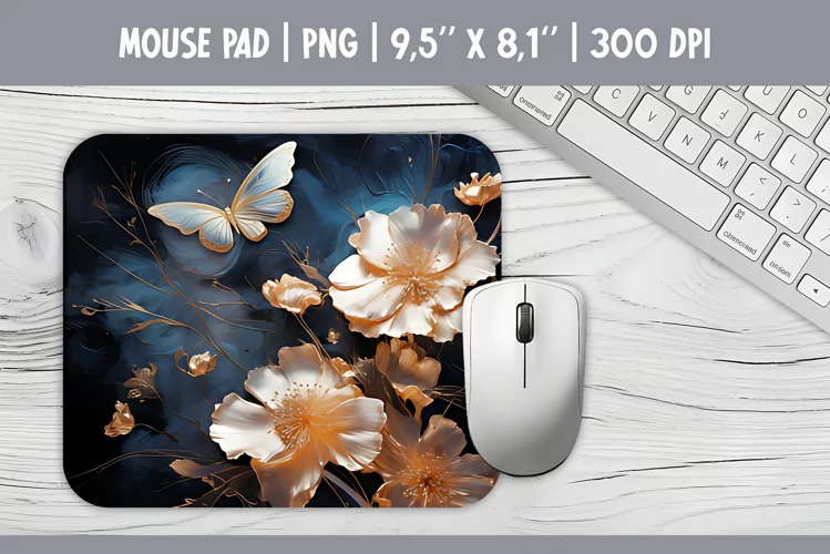 3d Gold Butterflies & Flowers Mouse Pad Sublimation Design