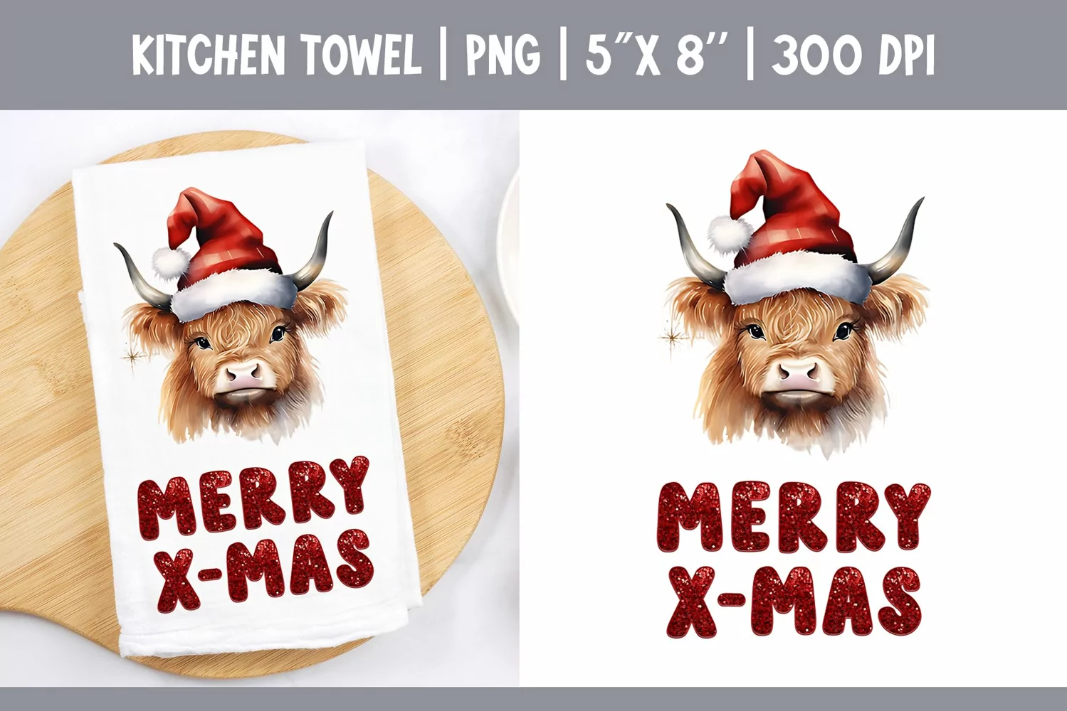 Similar Design Products to Christmas Highland Cow | Kitchen Towel Sublimation Design