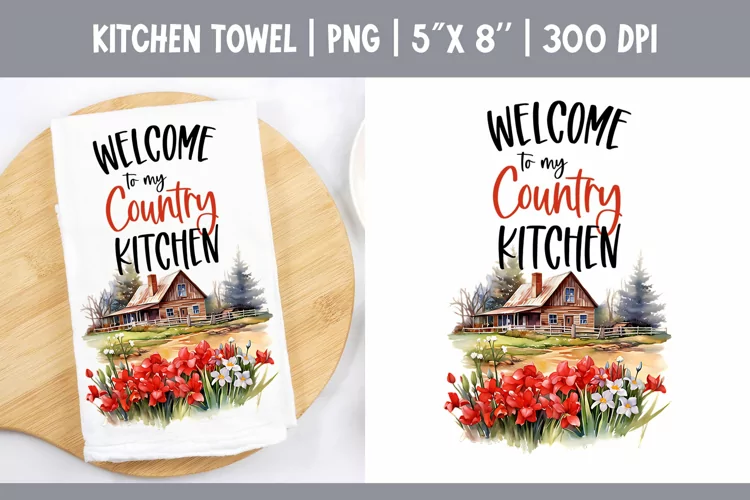 Farmhouse Country Kitchen Towel Sublimation Design PNG