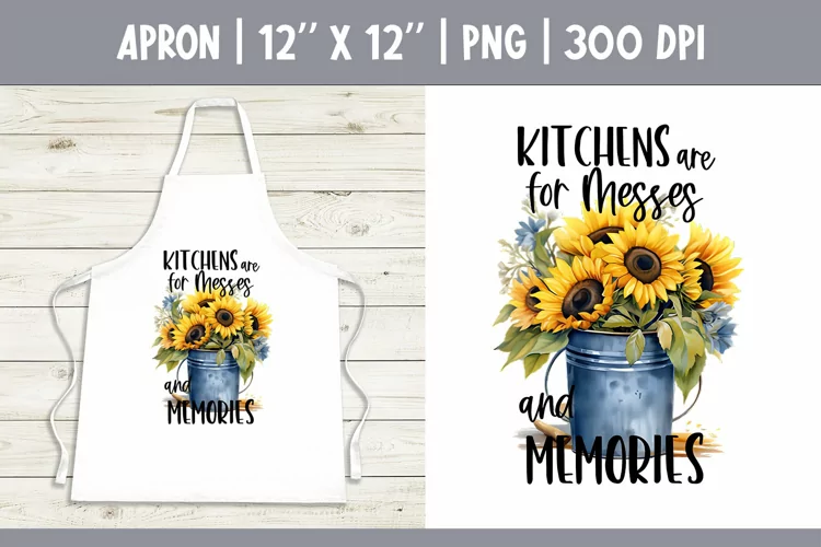 Kitchen Apron Sublimation Design PNG | Kitchens are for Messes and Memories | Bucket with SunFlowers