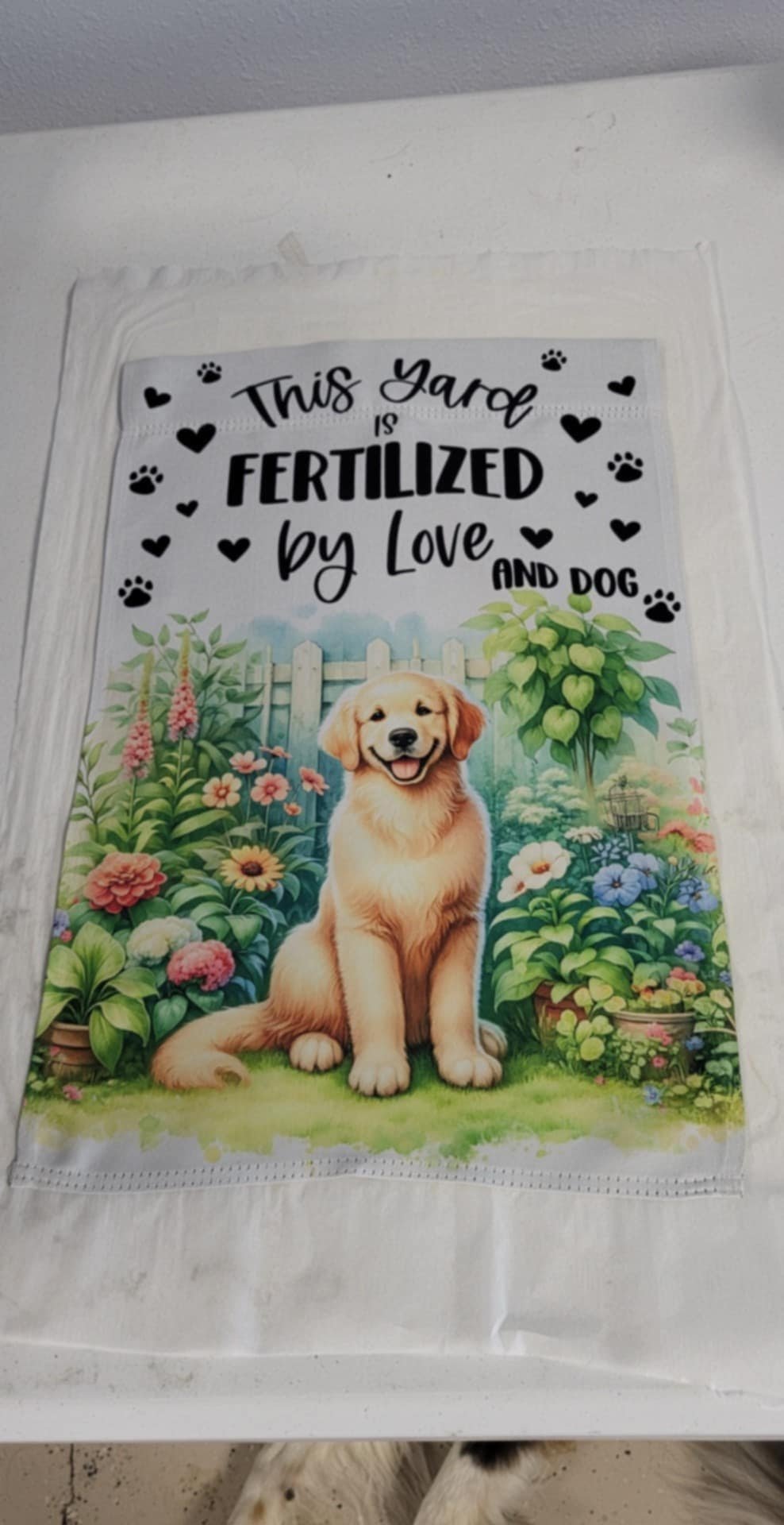 Funny Dog Garden Flag Sublimation Design | This Yard is Fertilized by Love and Dog | golden retriever