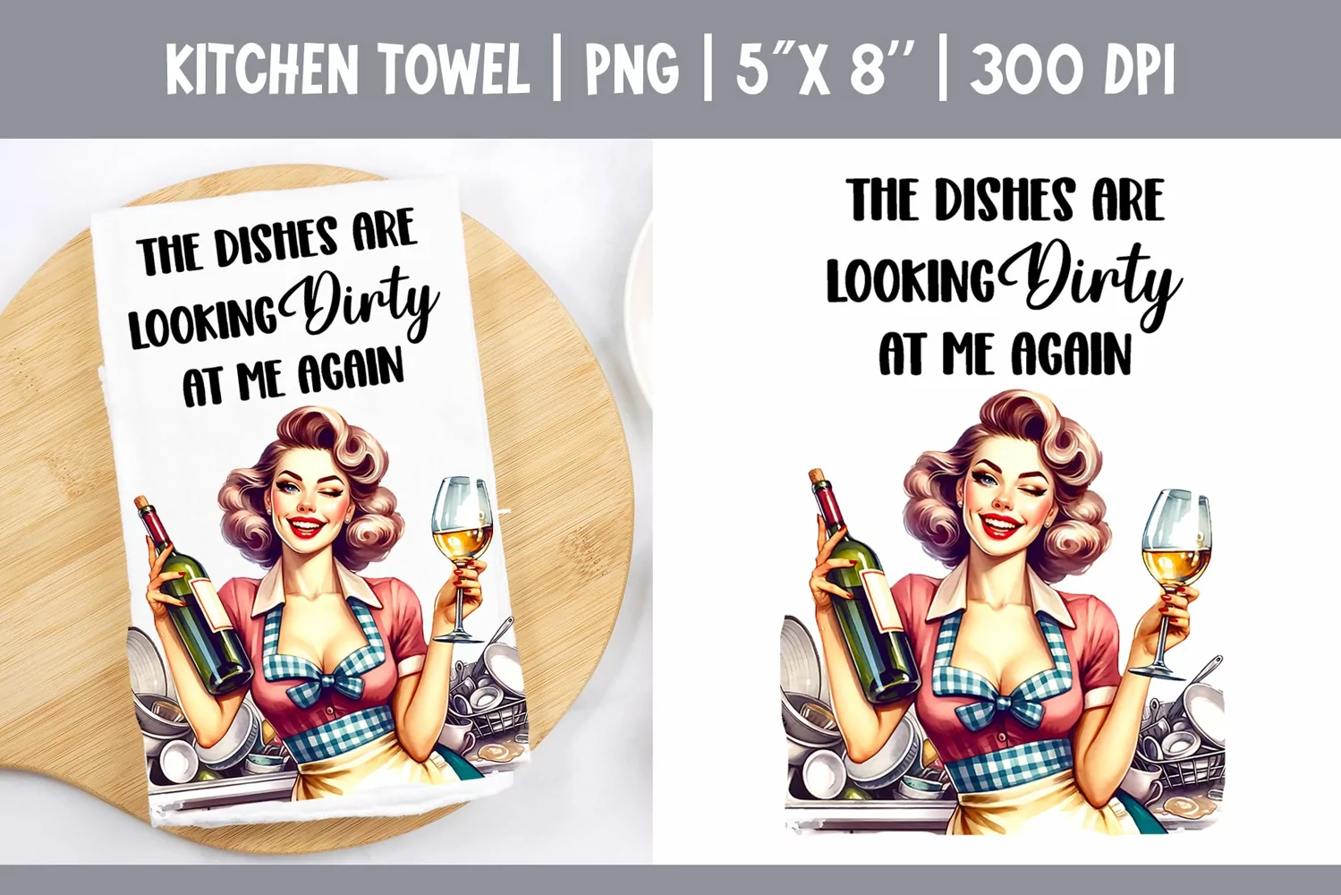 Funny Kitchen Towel Kitchen Dish Towel Retro Woman Kitchen Towel Sublimation Sarcastic Funny Quotes Dish Towel Sublimation Kitchen Towel Sublimation Designs Pin Up Retro Kitchen Funny Phrases Sarcastic Dish Towels
