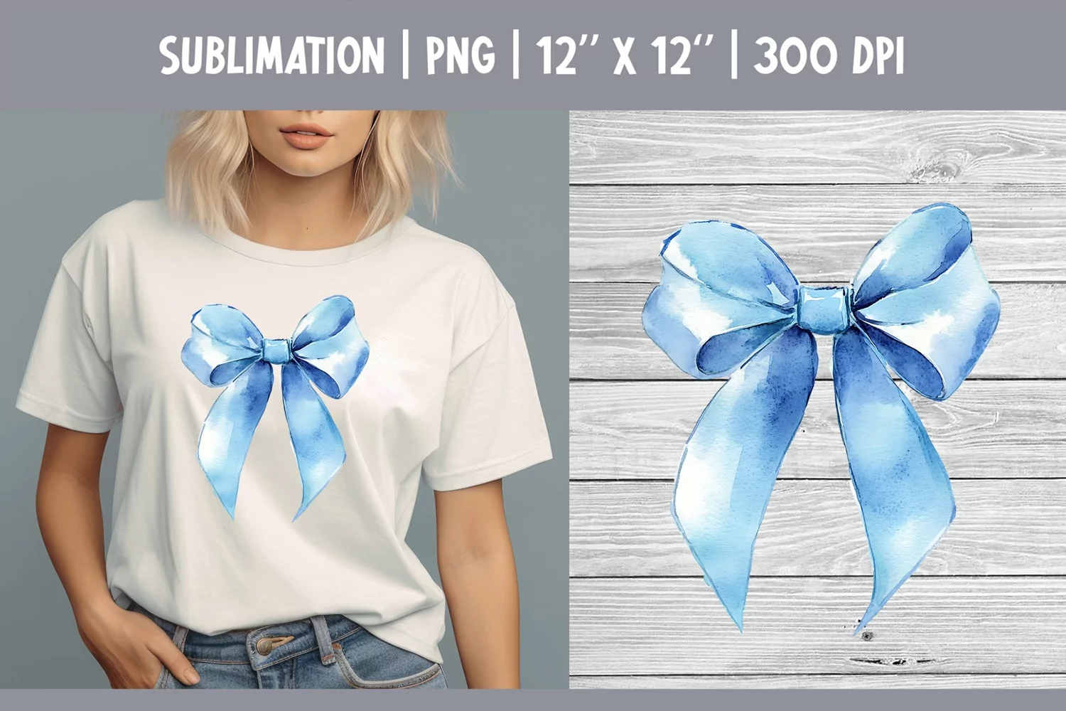 Blue Watercolor Bow Clipart | Vintage Coquette Sublimataion example image 1